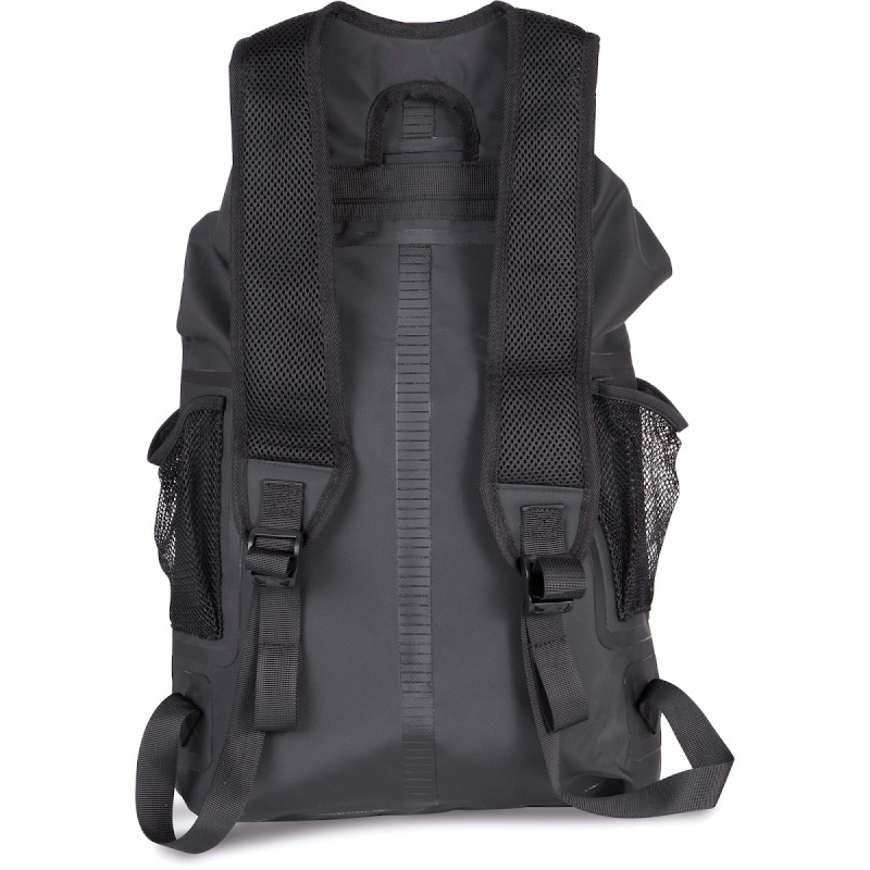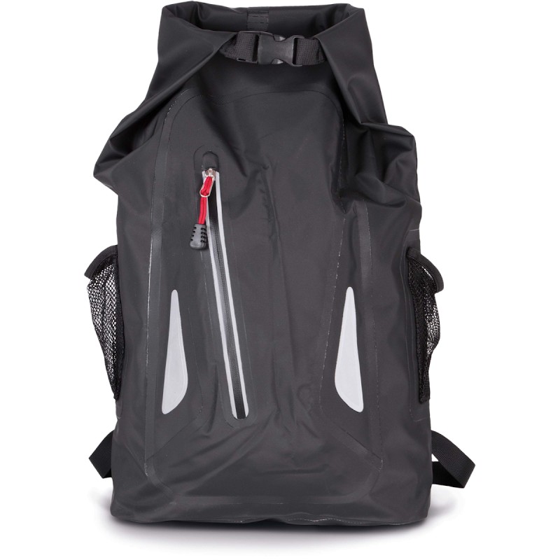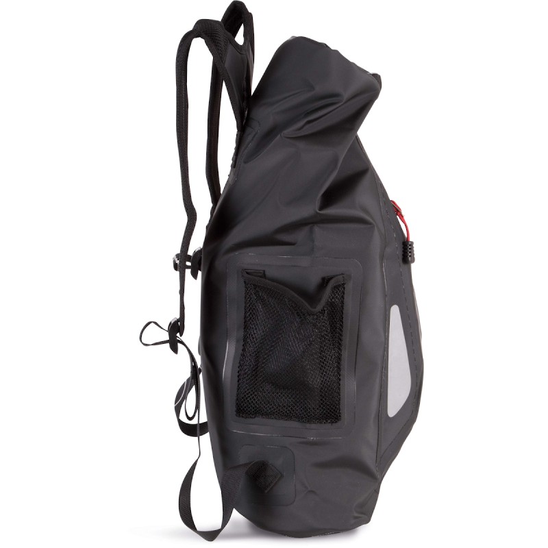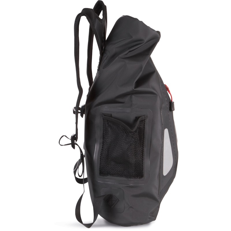 Sac fourre-tout étanche en toile tarpaulin PVC (polychlorure de vinyle). Système de fermeture à enroulement roll-top. Poche avant avec fermeture zippée 100% étanche. Bretelles confortables et respirantes. Poche côté en maille filet. Parfait pour les sports aquatiques, en mer ou pour des virées en moto.