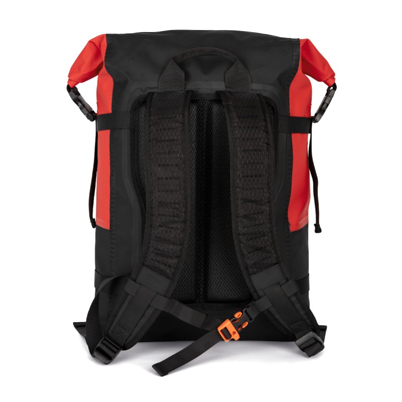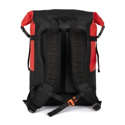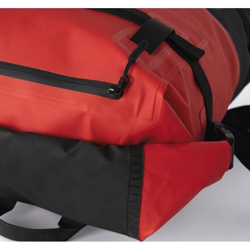 100% polyester. Sac à dos 100% imperméable avec sangles de compression pour stabiliser le contenu. Système de fermeture enroulée roll-top. Poche avant avec fermeture éclair, 100 % imperméable. Bretelles confortables et respirantes. Sifflet de sécurité incorporé dans la sangle de poitrine. Idéal pour les sports nautiques ou à moto.