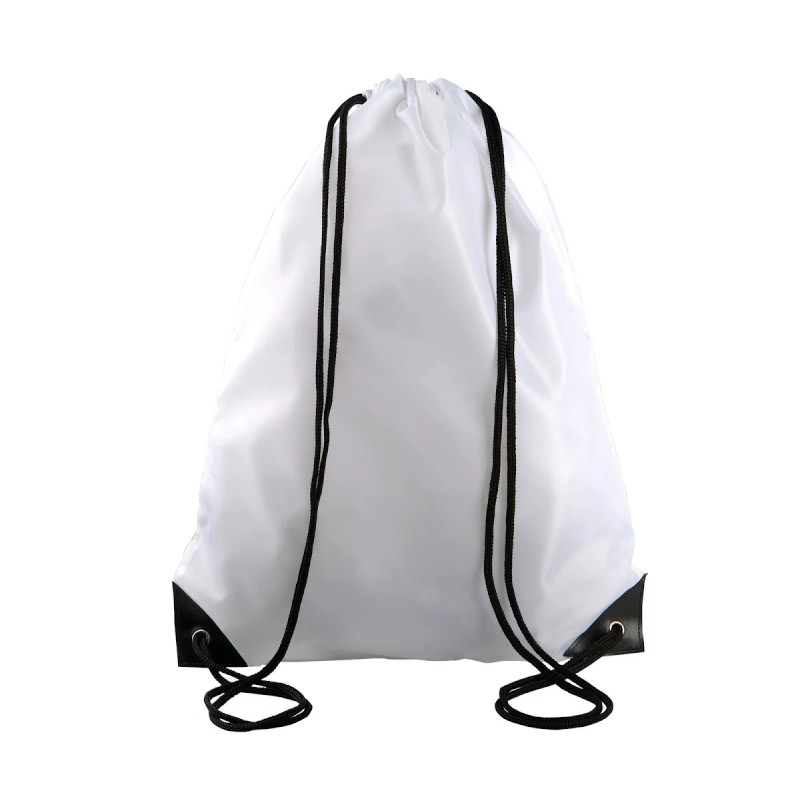 Sac à dos en polyester 210D avec cordelettes et coins renforcés.