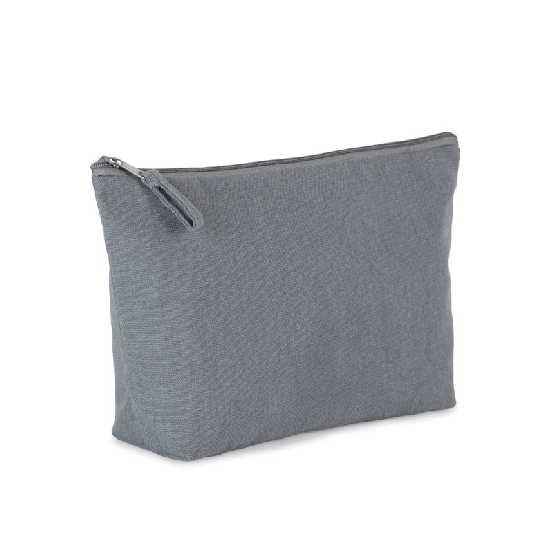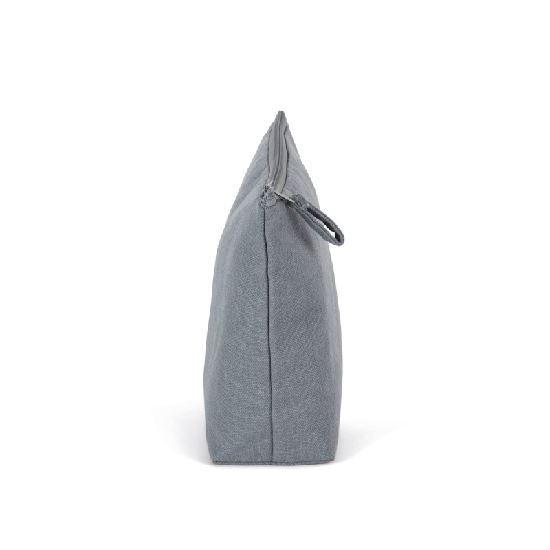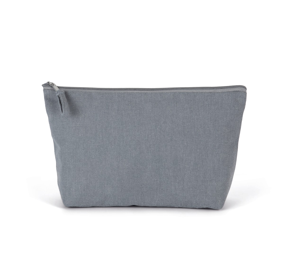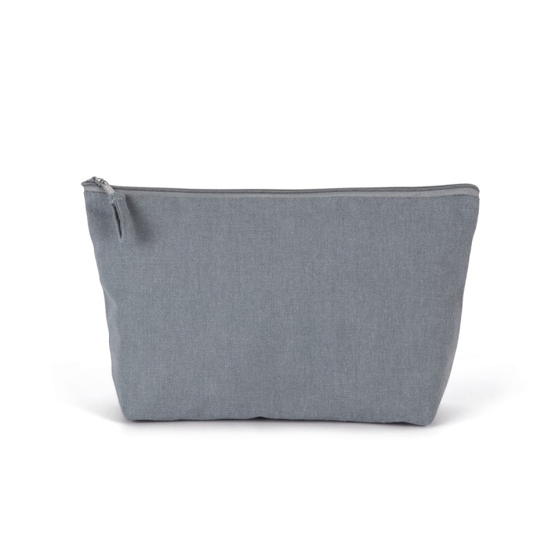 Coton recyclé / polyester recyclé. Pochette / Trousse de toilette avec fermeture éclair en deux tailles. Ce sac fait partie du projet "K-loop". À travers ce projet, Kimood ferme la boucle de l’économie circulaire au sens strict. Le coton utilisé provient en effet des déchets de fabrication des articles en coton de la marque Kariban, et de la gamme KARIBAN BRANDS. Le polyester ajouté est issu du recyclage de bouteilles plastique en PET. Durant le processus de recyclage, des traceurs sont ajoutés au fil, à savoir des filaments en viscose et céramique qui font office d’empreinte digitale unique. Les traceurs réfléchissent la lumière de façon unique, et portent donc un code univoque et inviolable. Grâce à cela, nous pouvons donc mémoriser dans une chaîne de blockchain, toutes les informations des processus auxquels le fil a été soumis de façon univoque. Grâce à la technologie des traceurs Aware™ et à la plate-forme correspondante de blockchain, Kimood permet au consommateur final de suivre l’ensemble du processus de production. Cela permet de garantir que le produit a bien été recyclé en utilisant ses propres déchets, sans altérations possibles du processus. Une étiquette spéciale avec un QR code permet d’accéder à la plate-forme Aware™ et d’authentifier directement les certifications via un simple smartphone.