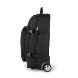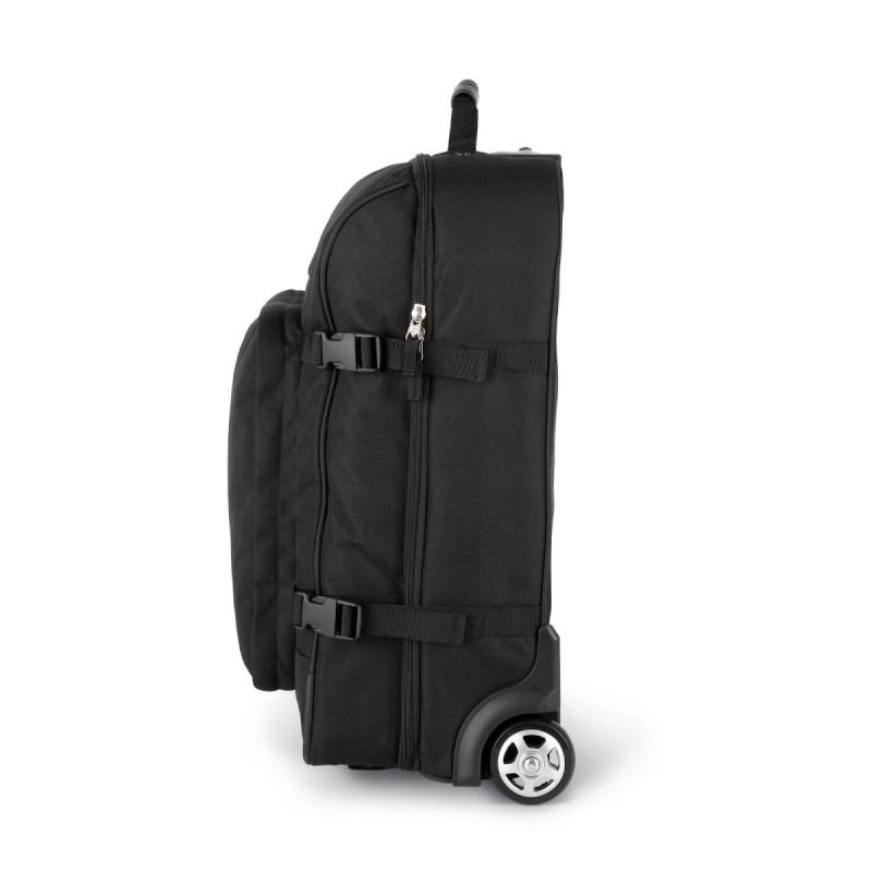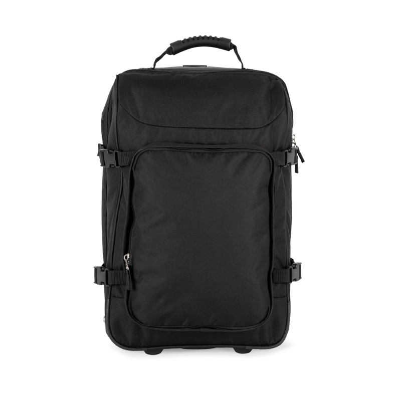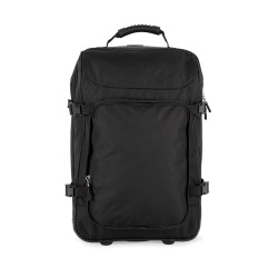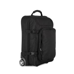 100% polyester. Trolley convenant comme bagage à main. Panneau frontal amovible pour faciliter l'impression ou la broderie. Deux compartiments intérieurs séparés. Poignées en caoutchouc renforcées.