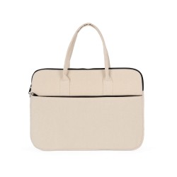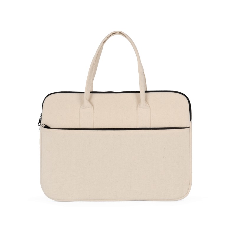 100% coton. Sac de travail en coton. Compartiment matelassé porte-tablette ou porte-ordinateur jusqu'à 15 pouces. Poche avant et arrière identique avec fermeture zippée pour faciliter la personnalisation des 2 côtés. Poignées réalisées dans le même matériau que le corps du sac.
