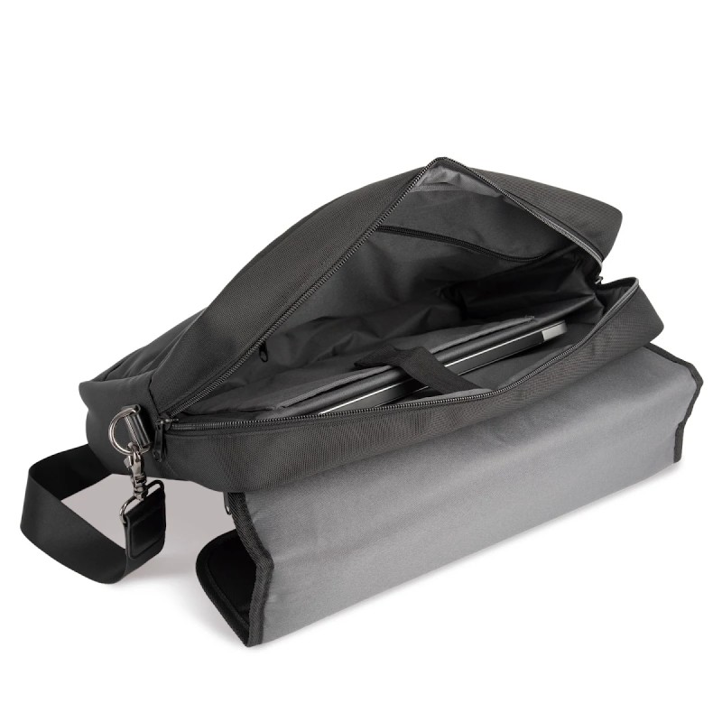 100% polyester recyclé. Sac de travail de type messager avec bandoulière amovible. Compartiment intérieur rembourré pour ordinateur avec pochette pour tablette. Compartiment principal pour les documents avec grande poche intérieure zippée et fermeture à glissière sur le dessus. Grande poche arrière zippée. Rabat avec élément décoratif en matière contrastée et fermeture à bouton magnétique. Kialma est la collection haut de gamme de sacs et d'accessoires de K-loop. Les produits K-loop détiennent des marqueurs dans le fil et grâce à la technologie blockchain, cela permet la traçabilité de l'ensemble de la chaîne de production. Une étiquette spéciale avec un QR code permet d'accéder à la plateforme Aware™ et d'authentifier directement les certifications avec un simple smartphone.