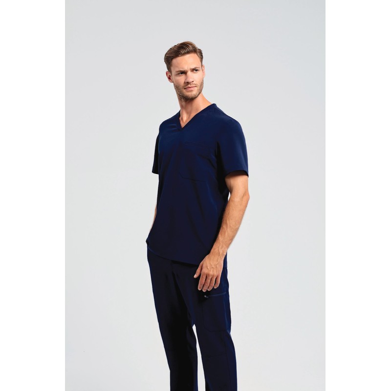 42% Polyester / 33% Polyester recyclé / 19% Viscose / 6% élasthanne. Encolure en V. Poche côte poitrine gauche. Fentes d'aisance latérales. Tissu respirant.