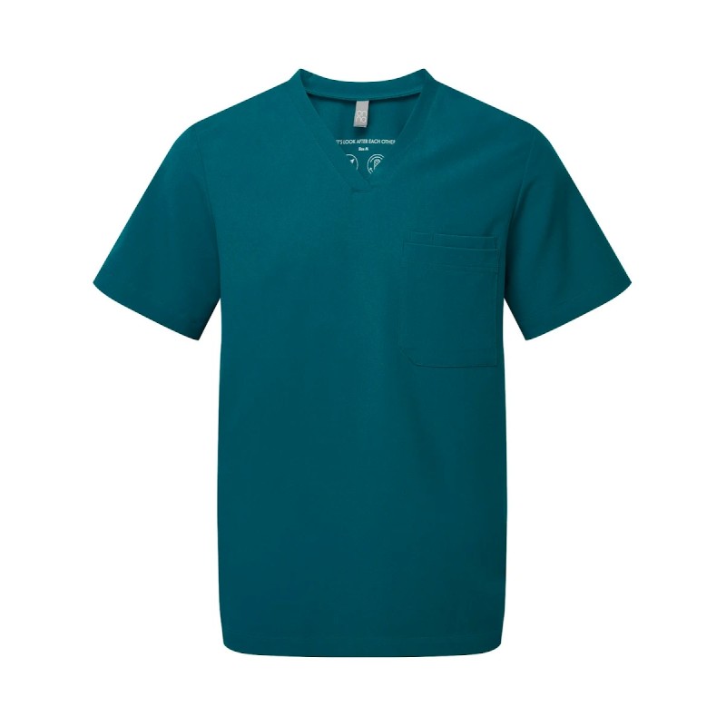 42% Polyester / 33% Polyester recyclé / 19% Viscose / 6% élasthanne. Encolure en V. Poche côte poitrine gauche. Fentes d'aisance latérales. Tissu respirant.