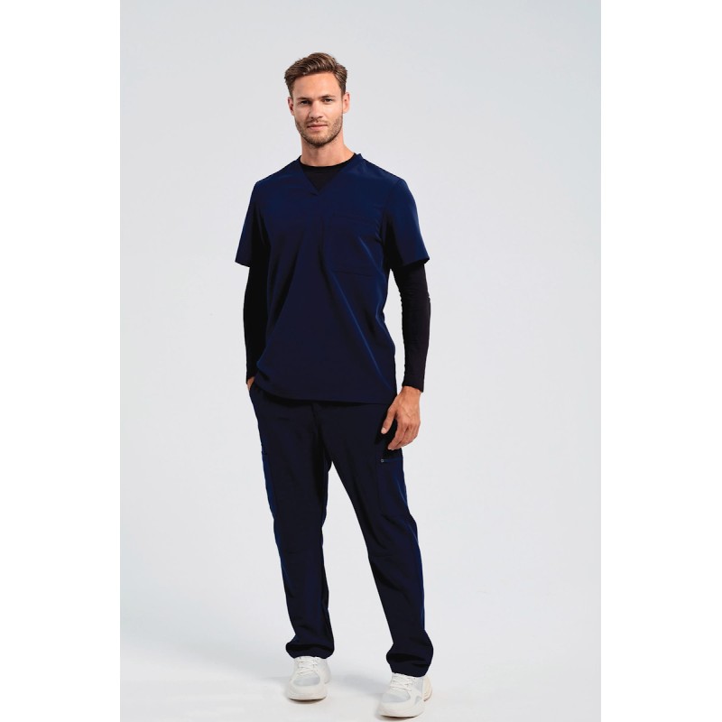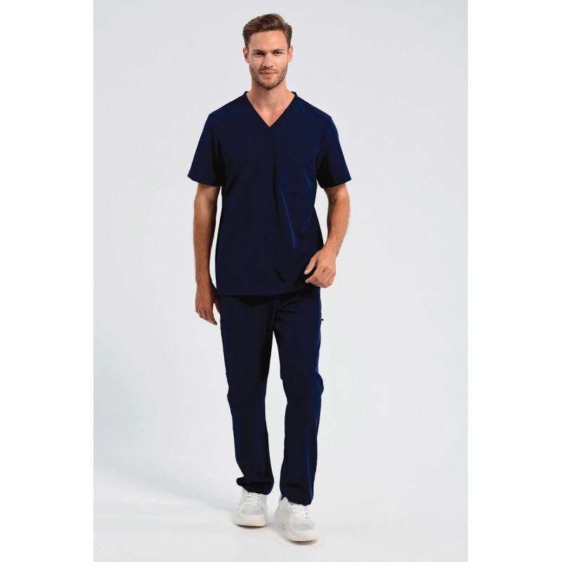 42% Polyester / 33% Polyester recyclé / 19% Viscose / 6% élasthanne. Encolure en V. Poche côte poitrine gauche. Fentes d'aisance latérales. Tissu respirant.