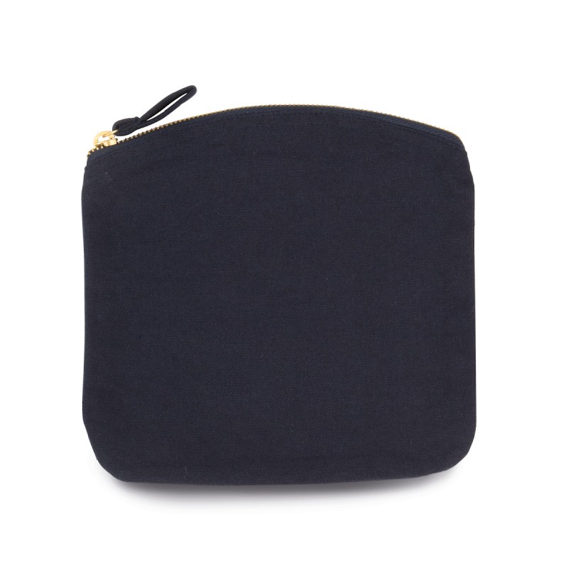 100% coton. Pochette en coton canvas dotée d'une fermeture glissière en métal. Existe en deux formats.