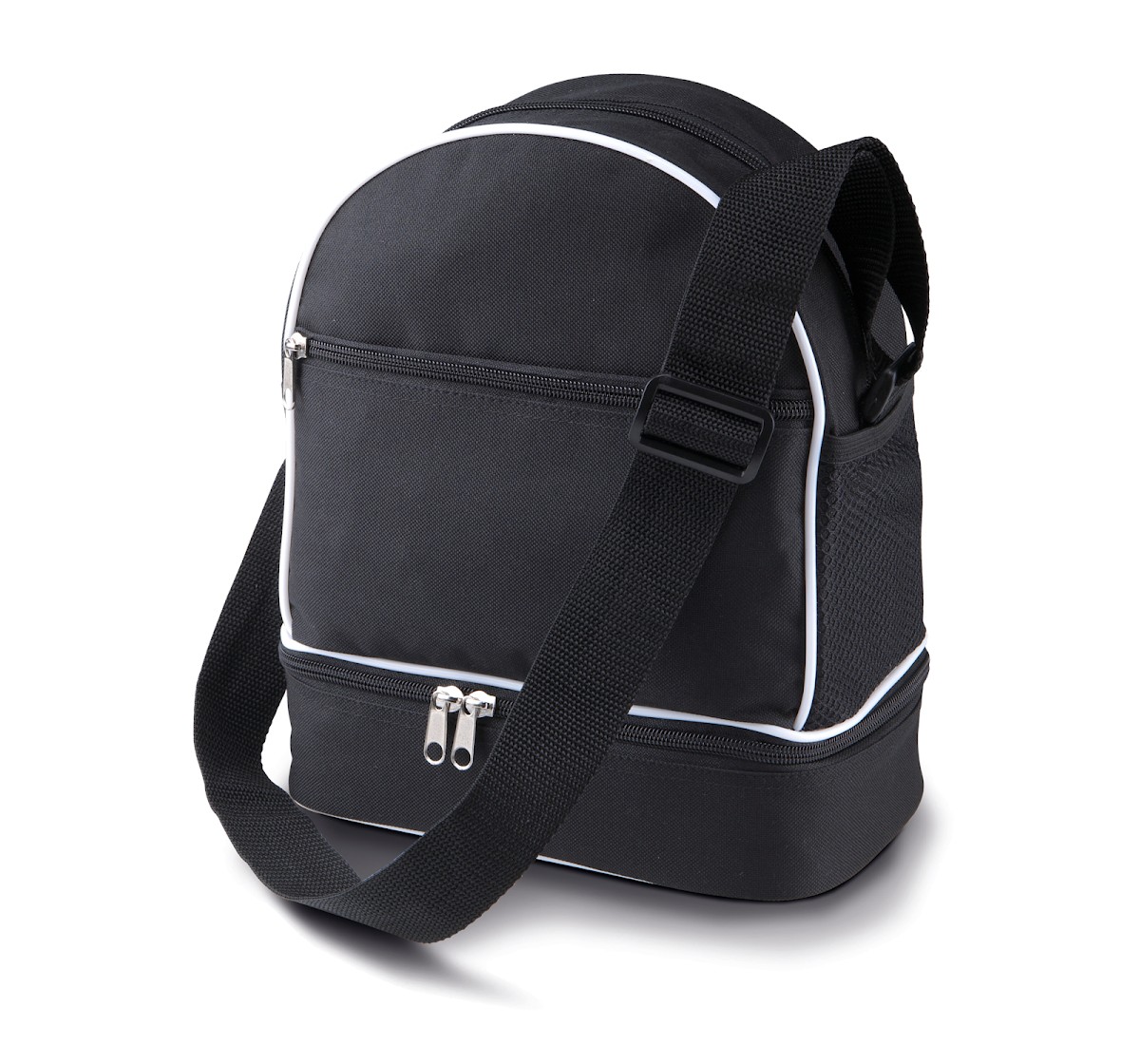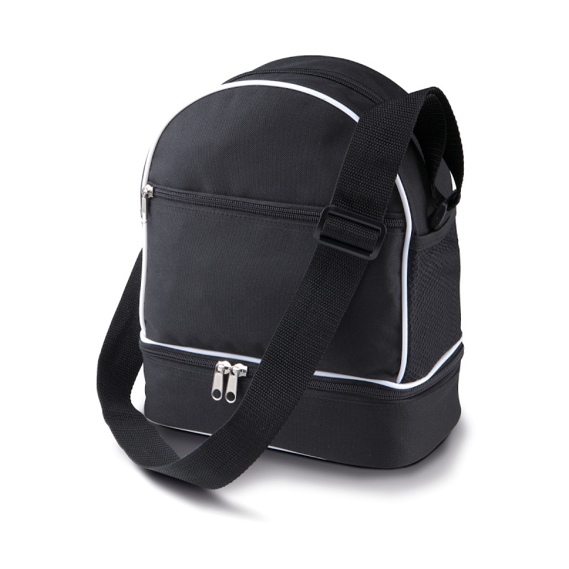 Sac de pétanque en polyester 600D, compartiment avec mousse au fond du sac conçu pour ranger 3 boules, grande poche devant zippée, sangle d'épaule ajustable.