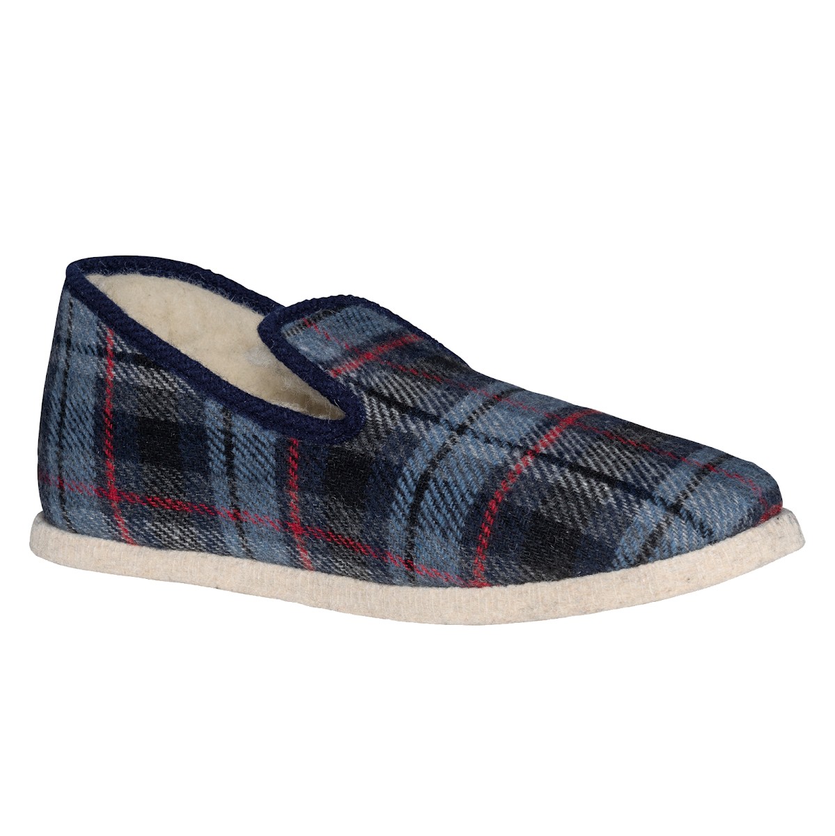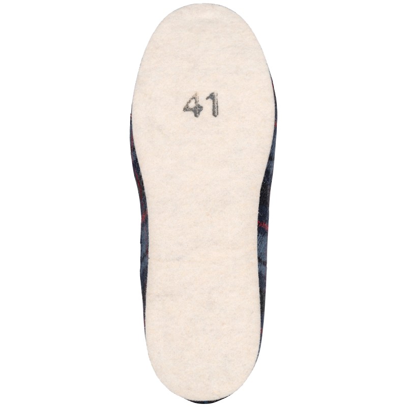 Coloris Bordeaux checked et Navy checked : 50% acrylique / 45% coton / 5% divers. Coloris Anthracite : 62% polyester / 38% acrylique. Doublure 100% laine et semelle en feutre tissé 100% laine. Coupe, montage et assemblage par la technique ancestrale du "cousu-retourné" qui apporte plus de résistance et de longévité au chausson. ication IG (Indication Géographique) "Charentaises de Charente Périgord".