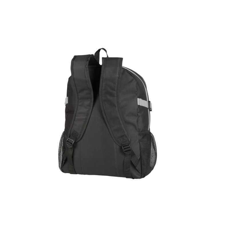 2 grands compartiments de rangement. 2 poches filet latérales. Zips inversés contrastés.