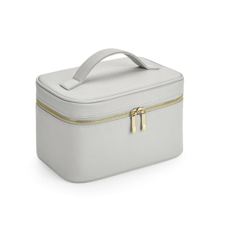 Simili cuir saffiano au grain fin. Compartiment principal zippé. Poche intérieure zippée.