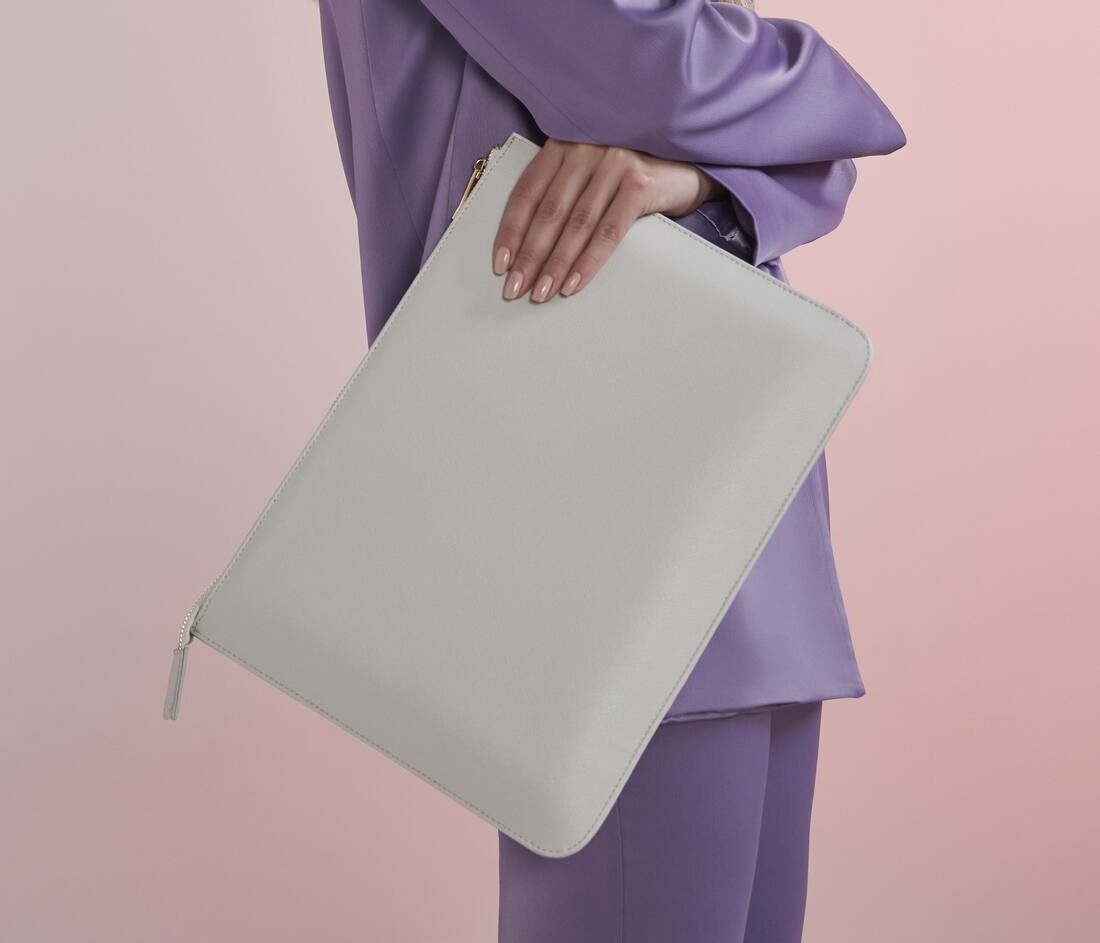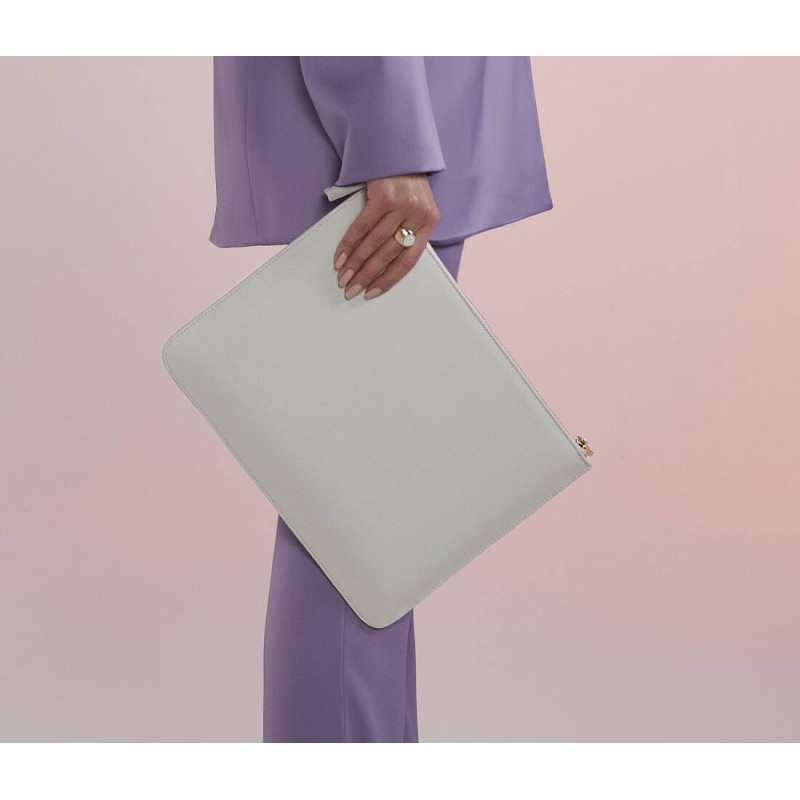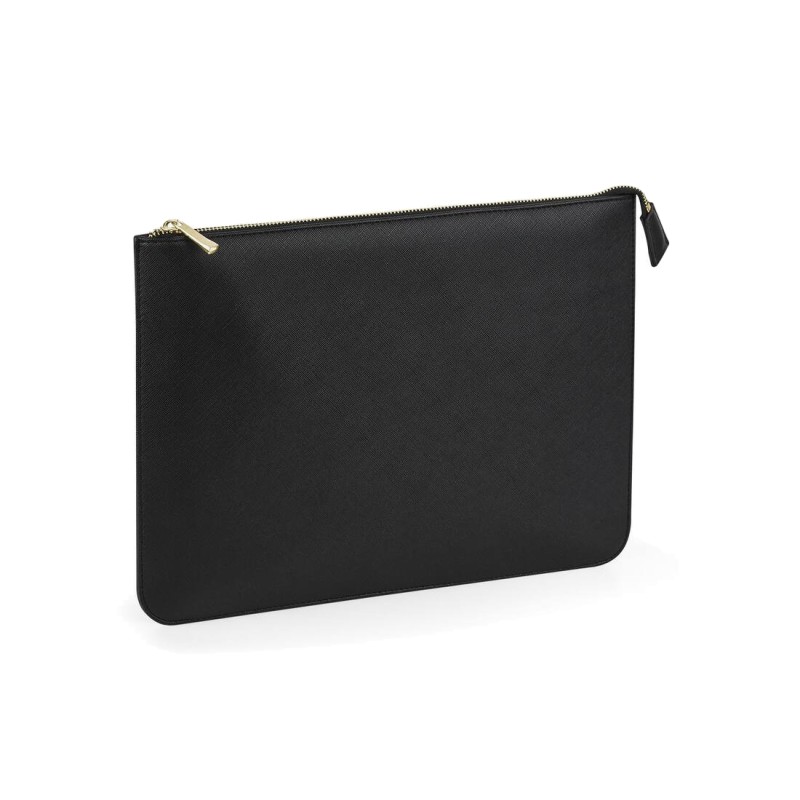 Simili cuir saffiano au grain fin. Fermeture zippée en métal doré brillant. Taille idéale pour les dossiers A4.