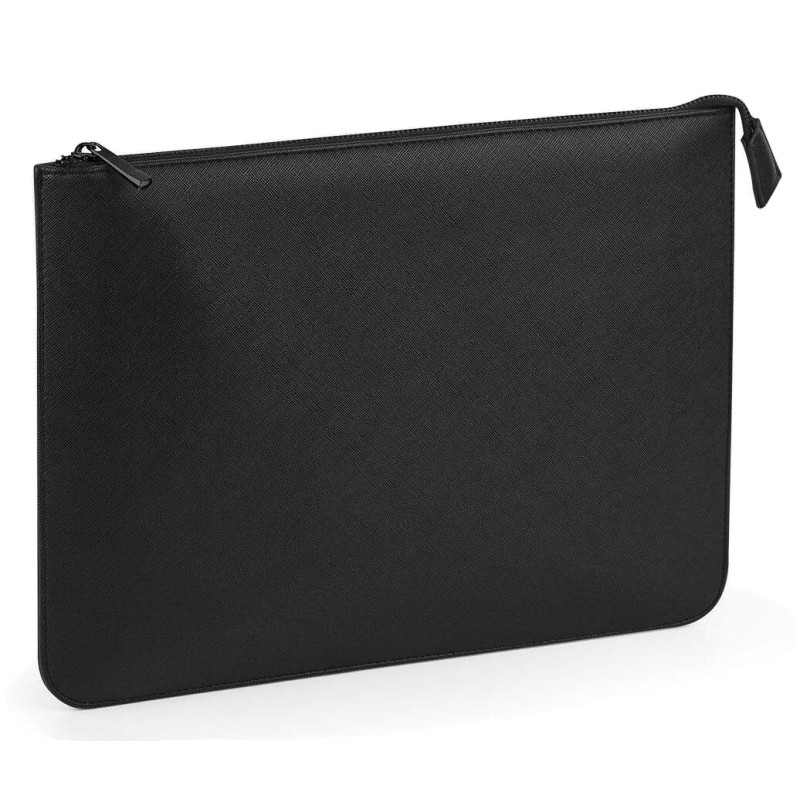 Simili cuir saffiano au grain fin. Fermeture zippée en métal doré brillant. Taille idéale pour les dossiers A4.