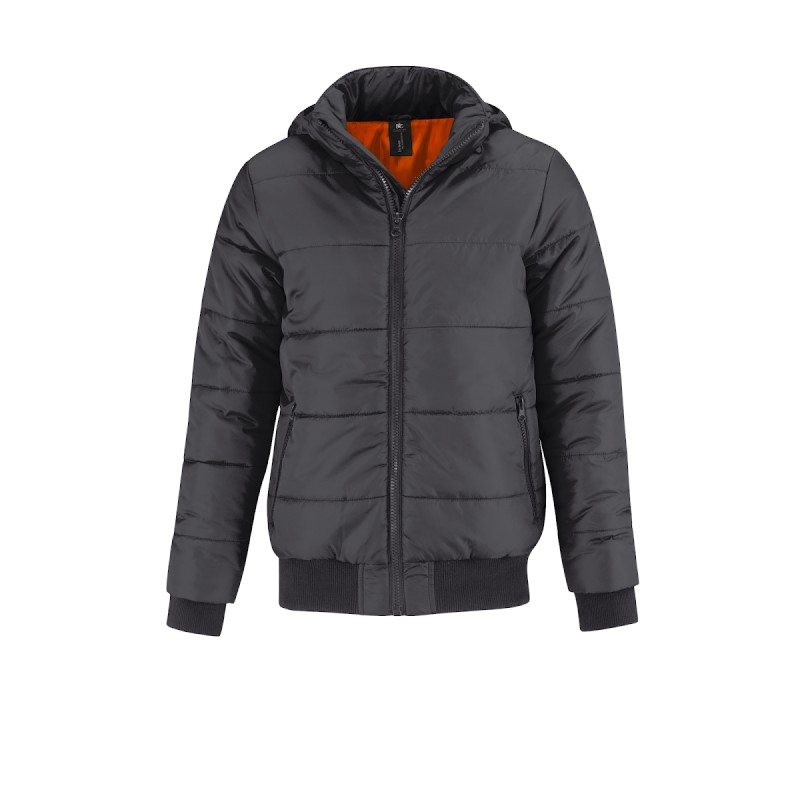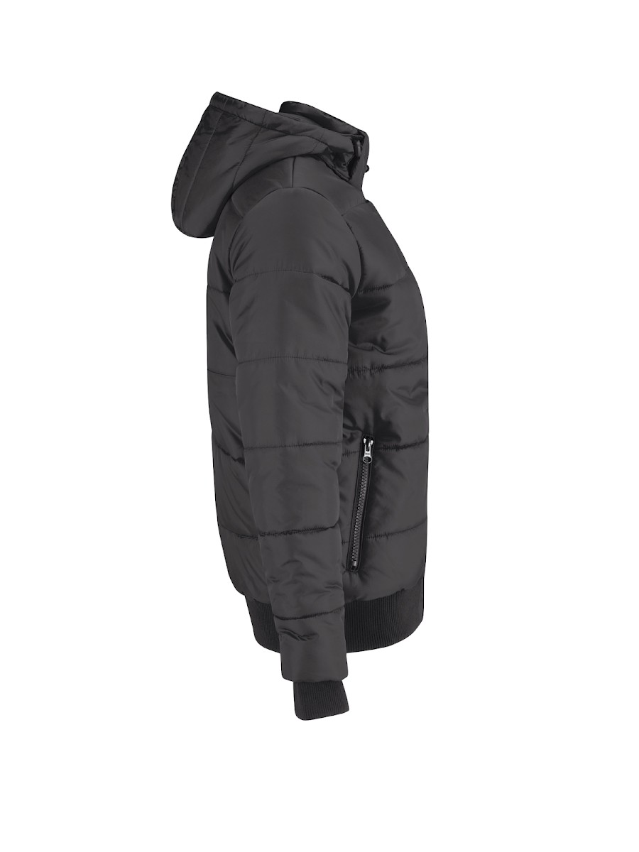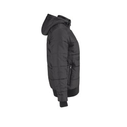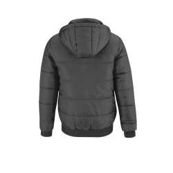 Couche extérieure : taffetas 300T 100% polyester avec enduit acrylique. Couche intérieure : taffetas rembourré 100 % polyester. Capuche rembourrée détachable et ajustable et patte intérieure anti-intempéries. 2 poches avant zippées et 1 poche portefeuille intérieure. Poignets et bord inférieur en coton/élasthanne côte 2x2. Zip SBS ton sur ton. Style « bomber » contemporain et coupe "retail" avec couleur extérieure unie et doublure intérieure contrastée. Accès facile pour décoration.
