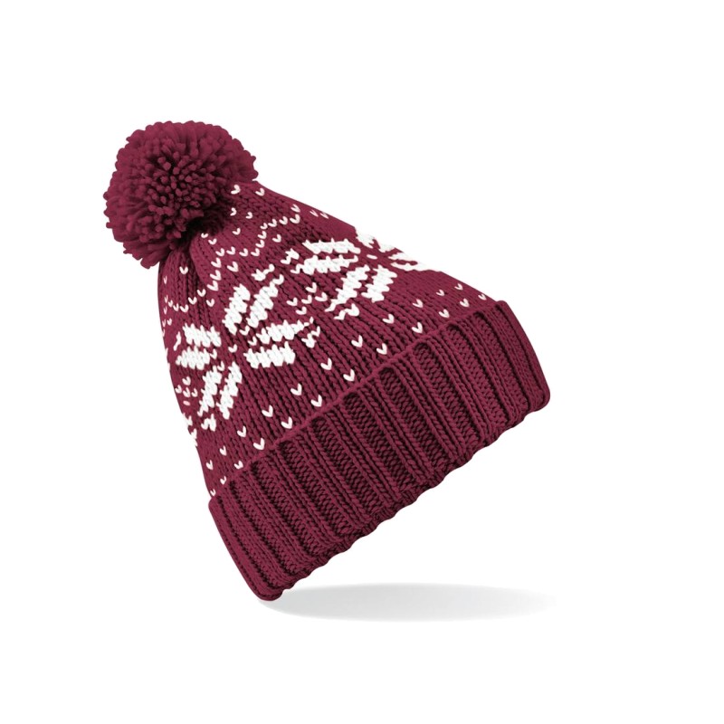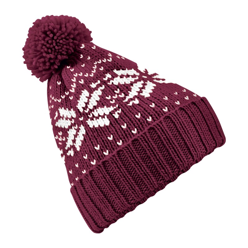 100 % acrylique doux et filé | Motife intemporel Fair-Isle | Style classique | Conception à revers pour une décoration optimale | Étiquette détachable pour faciliter la modification de la marque | Pompon uni-colore