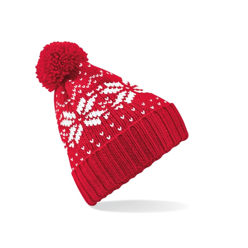 100 % acrylique doux et filé | Motife intemporel Fair-Isle | Style classique | Conception à revers pour une décoration optimale | Étiquette détachable pour faciliter la modification de la marque | Pompon uni-colore