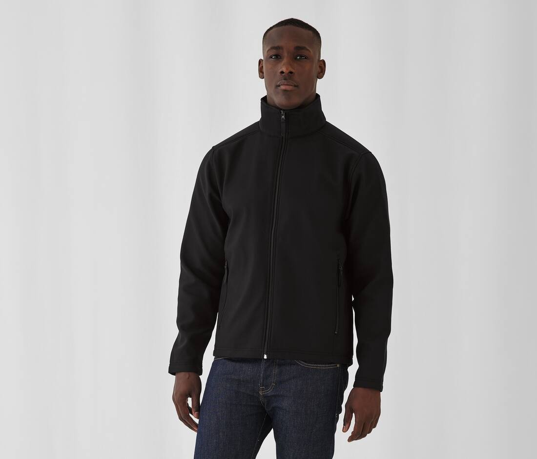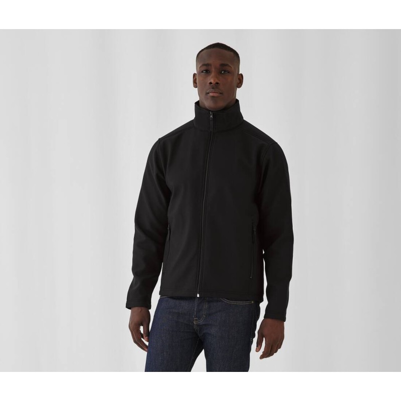 Veste Softshell tissée déperlante 2 couches. Couche extérieure : 96 % polyester / 4 % élasthanne. Couche intérieure : micro-polaire 100 % polyester avec traitement anti-boulochage. 2 poches avant zippées et 2 poches intérieures. Coutures renforcées par une double surpiqûre. Zips SBS. Accès facile pour décoration (avant - arrière - manches).