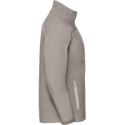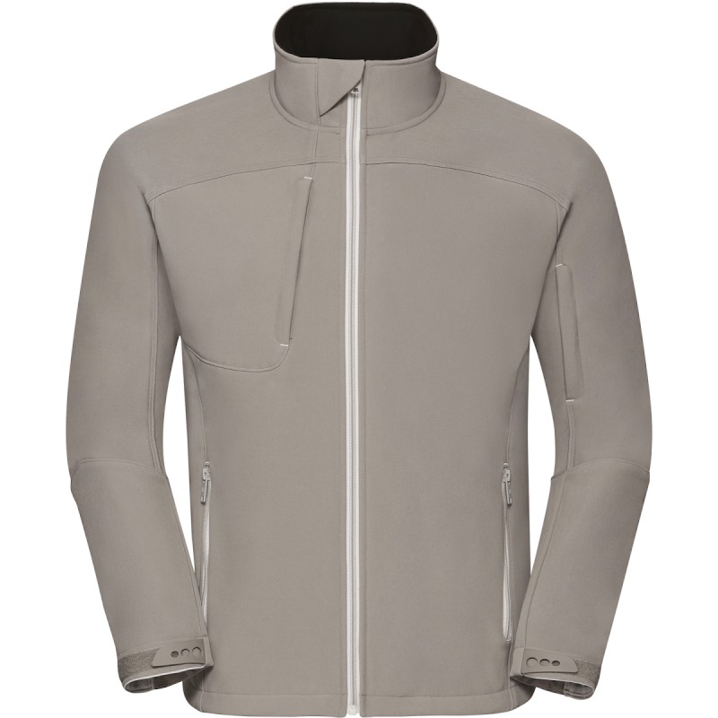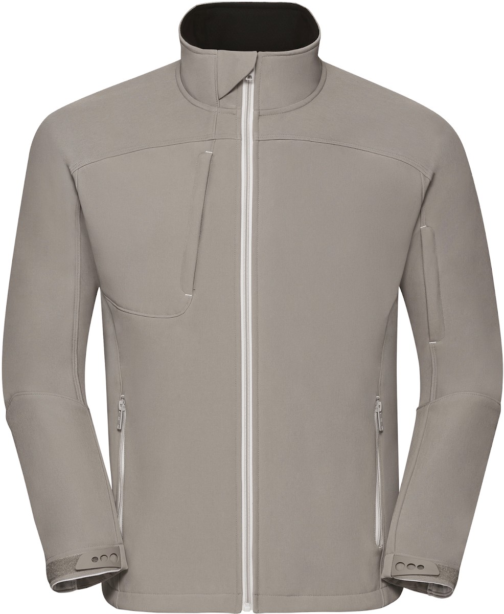 Softshell 3 couches 94% polyester / 6% élasthanne avec finition DWR Bionic-Finish® Eco. Innovation matière haute performance, sans fluor ni PFC, avec membrane hydrophobe 5000 mm, coupe-vent et respirante 5000 g/m²/24h. Zips et détails contrastés. Protège-menton. Col montant et rabat-tempête intérieur. Empiècements aérés hydroshell sous les bras. Doublure avant en jersey alvéolé avec une grande poche média en filet. Poches zippées avec rabat : 1 sur la poitrine et 1 sur la manche. Poignets ajustables avec languettes intégrées et bande velcro. Épaules sans couture. Zip intérieur pour accès personnalisation.