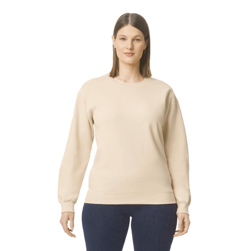 80% coton / 20% polyester. Intérieur gratté confortable. Idéal pour l'impression. Epaules tombantes. Bord-côte 1x1 avec poignets et bande inférieure en spandex pour plus d'élasticité. Coupe classique, corps tubulaire.