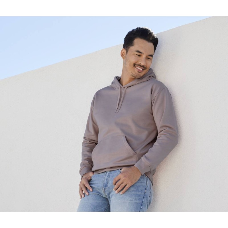 80% coton / 20% polyester. Intérieur gratté confortable et idéale pour l'impression. Capuche 2 pièces assortie en jersey . Epaules tombantes. Poche kangourou. Bord-côte 1x1 avec poignets et bande inférieur en spandex pour plus d'élasticité. Coupe classique, corps tubulaire.