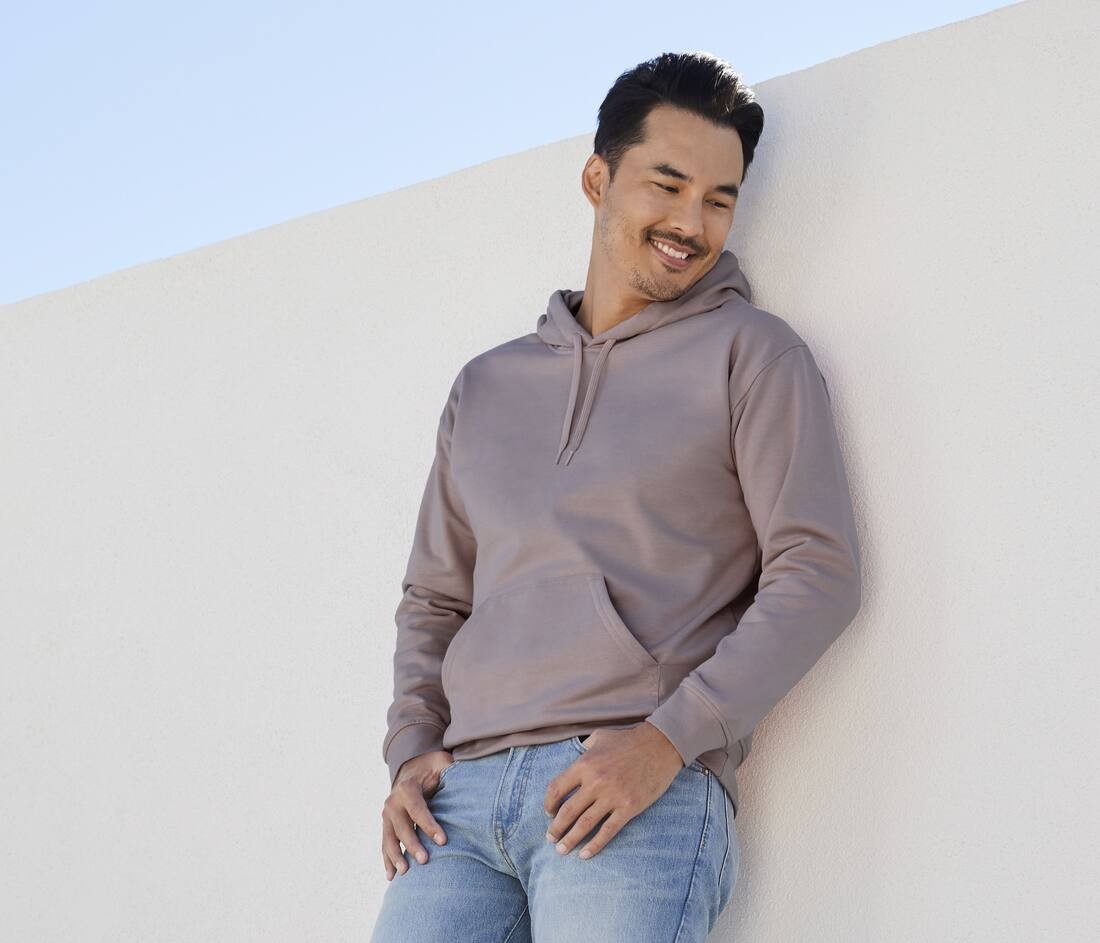 80% coton / 20% polyester. Intérieur gratté confortable et idéale pour l'impression. Capuche 2 pièces assortie en jersey . Epaules tombantes. Poche kangourou. Bord-côte 1x1 avec poignets et bande inférieur en spandex pour plus d'élasticité. Coupe classique, corps tubulaire.
