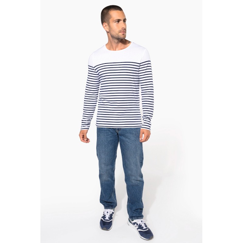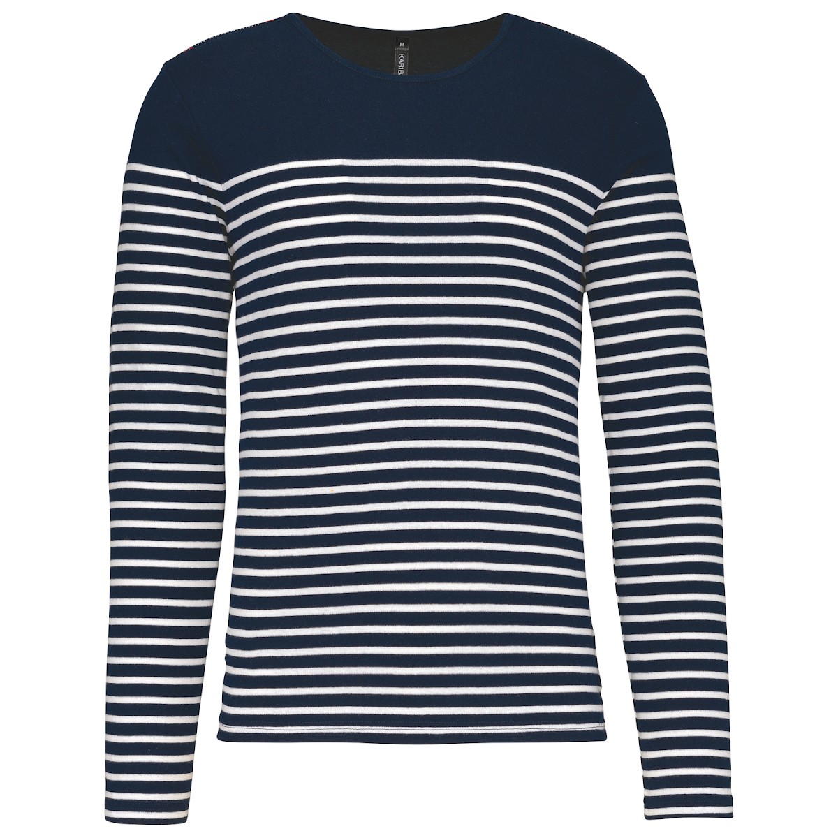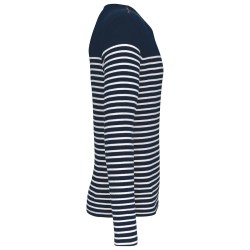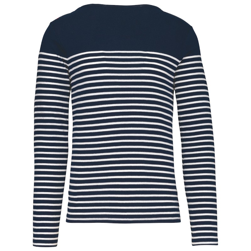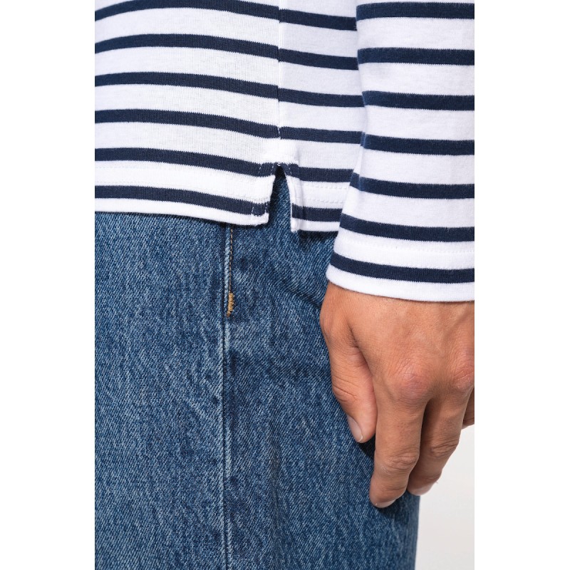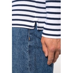 100% coton côte 1x1. Encolure ronde. Point fantaisie sur l'épaule. Fentes latérales.