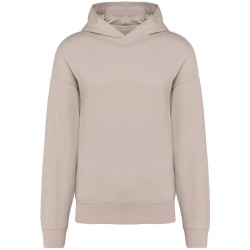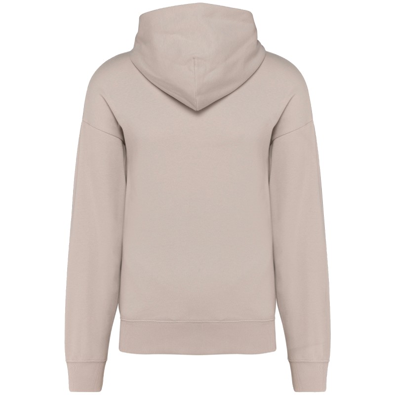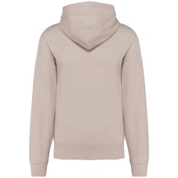 80% coton / 20% polyester. Coupe oversize avec épaules tombantes. Molleton gratté. Coton cardé. Bord côte 2x1 finition tubulaire pour une meilleure finition au bas de manches et de vêtement. Poche cachée avec zip invisible dans la couture côté droit au porté. Capuche avec pince doublée en coton. Présence d'élasthanne dans le bord côte bas de manche et de vêtement pour éviter que le vêtement se déforme. Bande de propreté en chevron ton sur ton. Demi-lune intérieur col. Finition double surpiqûre à cheval sur bas de manches et de vêtement. Pas d'étiquette de marque au col, uniquement une puce de taille pour faciliter la personnalisation.