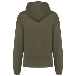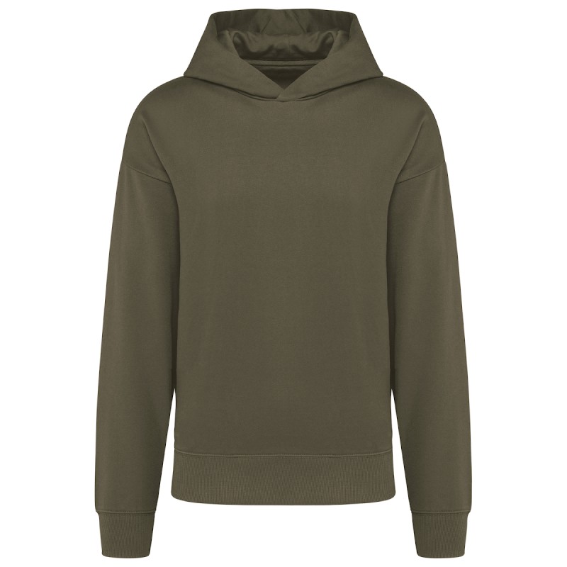 80% coton / 20% polyester. Coupe oversize avec épaules tombantes. Molleton gratté. Coton cardé. Bord côte 2x1 finition tubulaire pour une meilleure finition au bas de manches et de vêtement. Poche cachée avec zip invisible dans la couture côté droit au porté. Capuche avec pince doublée en coton. Présence d'élasthanne dans le bord côte bas de manche et de vêtement pour éviter que le vêtement se déforme. Bande de propreté en chevron ton sur ton. Demi-lune intérieur col. Finition double surpiqûre à cheval sur bas de manches et de vêtement. Pas d'étiquette de marque au col, uniquement une puce de taille pour faciliter la personnalisation.