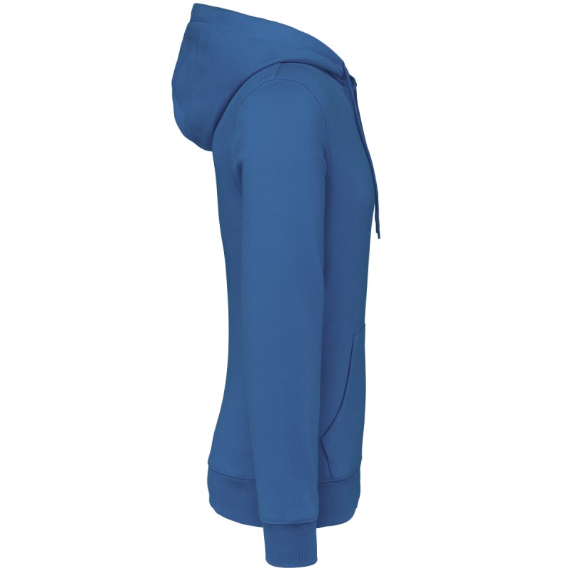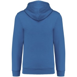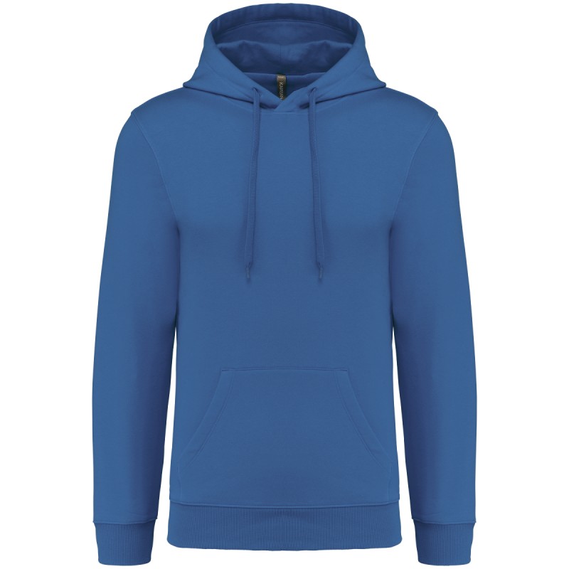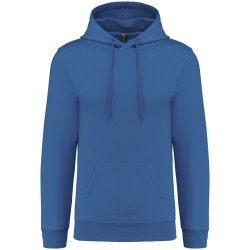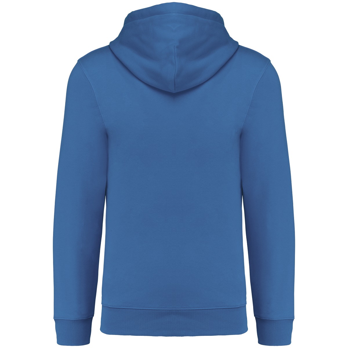 80% coton / 20% polyester. Tissu molleton gratté LSF 3 fils (Low Shrinkage Fleece) avec traitement antiboulochage. Fabriqué au Portugal. Coupe straight. Montage coupé cousu. Bord-côte 1x1 montage tubulaire pour une meilleure finition au bas de manches et de vêtement. Poche kangourou. Capuche doublée 100% coton jersey avec cordon de serrage plat œillets boutonnières. Finition demi-lune intérieur col. Finition double aiguille sur bas de manches, bas de vêtement. Pas d'étiquette de marque au col, uniquement une puce de taille pour faciliter la personnalisation.