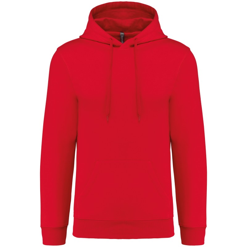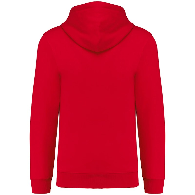 80% coton / 20% polyester. Tissu molleton gratté LSF 3 fils (Low Shrinkage Fleece) avec traitement antiboulochage. Fabriqué au Portugal. Coupe straight. Montage coupé cousu. Bord-côte 1x1 montage tubulaire pour une meilleure finition au bas de manches et de vêtement. Poche kangourou. Capuche doublée 100% coton jersey avec cordon de serrage plat œillets boutonnières. Finition demi-lune intérieur col. Finition double aiguille sur bas de manches, bas de vêtement. Pas d'étiquette de marque au col, uniquement une puce de taille pour faciliter la personnalisation.