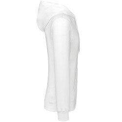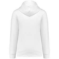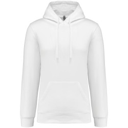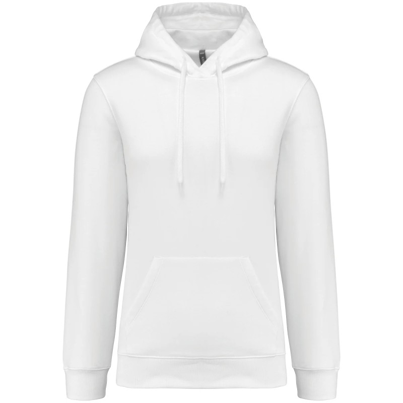 80% coton / 20% polyester. Tissu molleton gratté LSF 3 fils (Low Shrinkage Fleece) avec traitement antiboulochage. Fabriqué au Portugal. Coupe straight. Montage coupé cousu. Bord-côte 1x1 montage tubulaire pour une meilleure finition au bas de manches et de vêtement. Poche kangourou. Capuche doublée 100% coton jersey avec cordon de serrage plat œillets boutonnières. Finition demi-lune intérieur col. Finition double aiguille sur bas de manches, bas de vêtement. Pas d'étiquette de marque au col, uniquement une puce de taille pour faciliter la personnalisation.