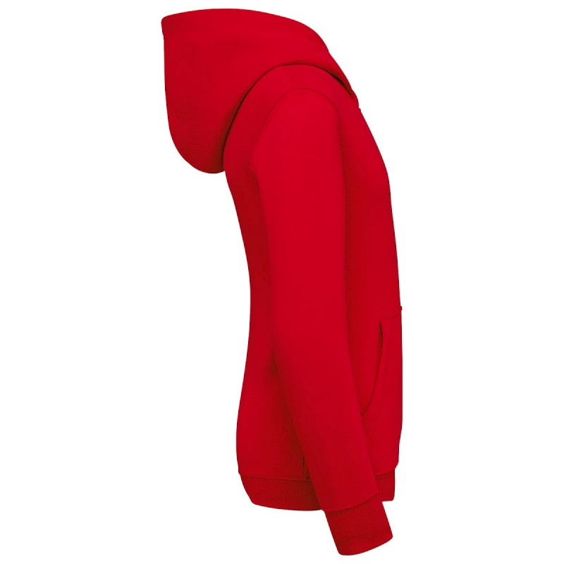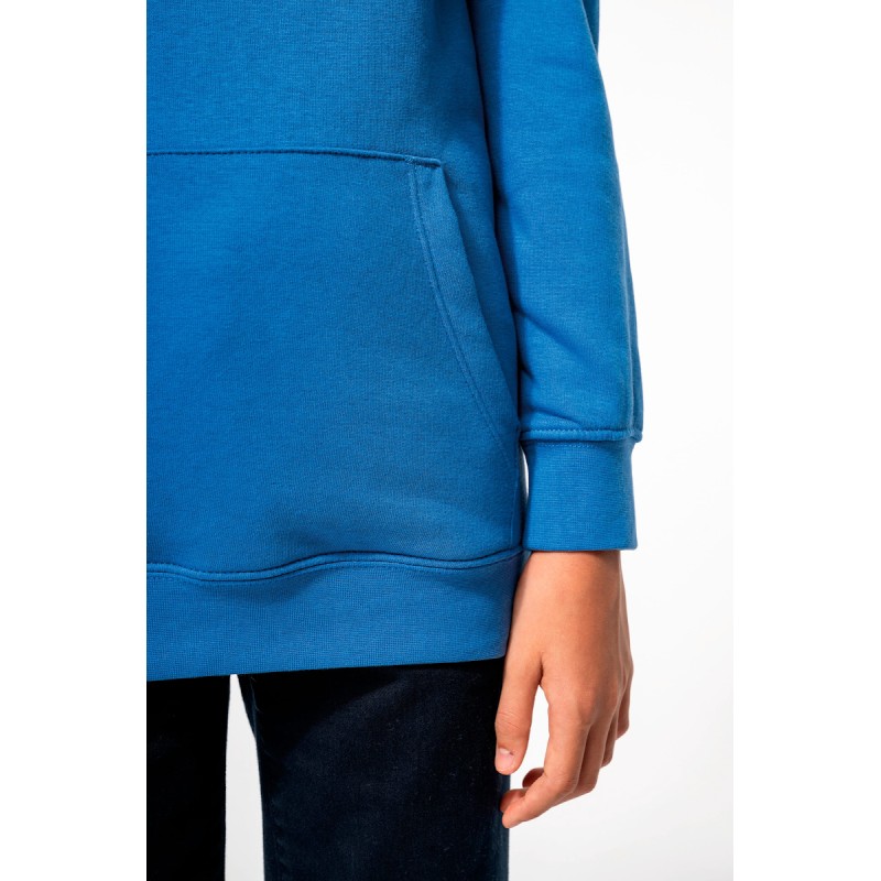 80% coton / 20% polyester. Coton peigné. Tissu molleton gratté 3 fils LSF (Low Shrinkage Fleece) avec traitement anti boulochage. Fabriqué au Portugal. Coupe ajustée. Bas de manches et de vêtement en bord-côte 1x1. Capuche doublée en coton jersey. Finition double surpiqûres sur épaule, emmanchures, bas de manches et de vêtement. Bande de propreté en jersey ton sur ton en finition intérieur de col. Poche kangourou. Demi lune au dos. Etiquette pour mentionner le prénom à intérieur du vêtement. Pas d'étiquette de marque au col, uniquement une puce de taille pour faciliter la personnalisation.