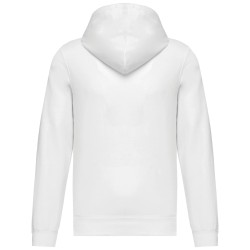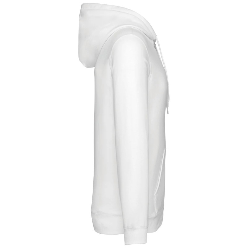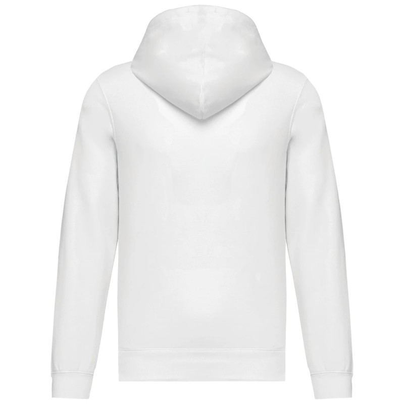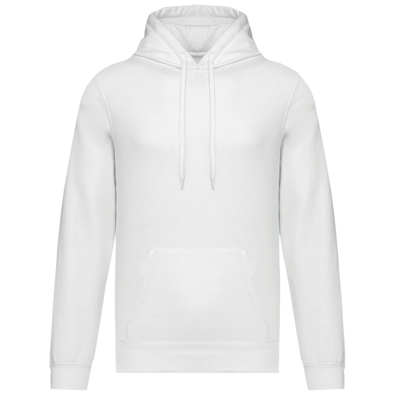 50% coton ring-spun / 50% polyester recyclé post consumer. Molleton gratté. Coupe straight. Coupé cousu. Bord-côte 2x1 montage tubulaire pour une meilleure finition au col, bas de manches et de vêtement. Poche kangourou. Capuche doublée polycoton jersey avec cordon de serrage plat. Bande de propreté jersey ton sur ton intérieur col. Pas d'étiquette de marque au col, uniquement une puce de taille pour faciliter la personnalisation.