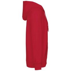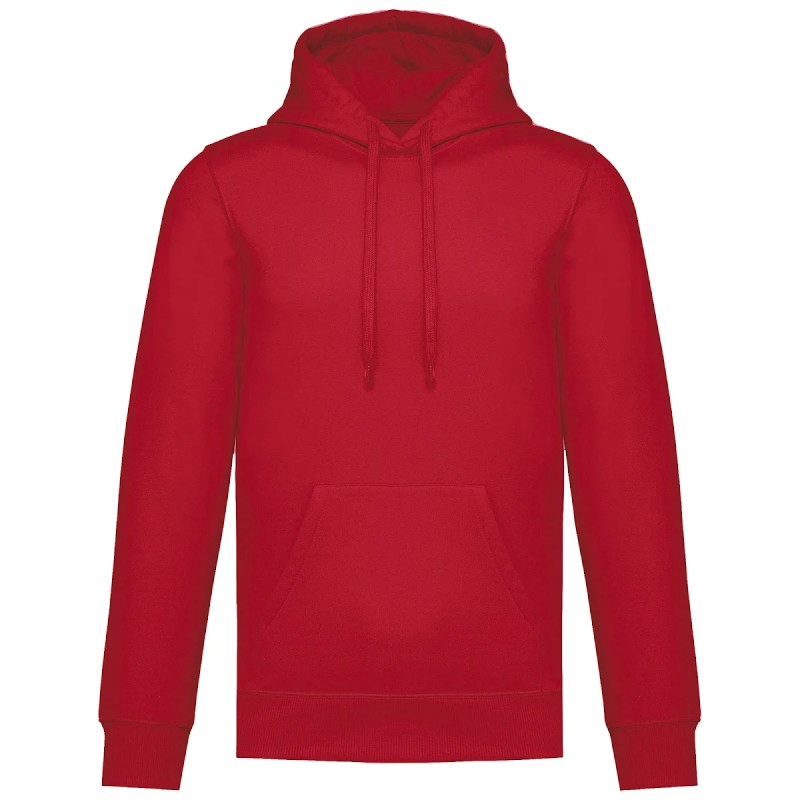 50% coton ring-spun / 50% polyester recyclé post consumer. Molleton gratté. Coupe straight. Coupé cousu. Bord-côte 2x1 montage tubulaire pour une meilleure finition au col, bas de manches et de vêtement. Poche kangourou. Capuche doublée polycoton jersey avec cordon de serrage plat. Bande de propreté jersey ton sur ton intérieur col. Pas d'étiquette de marque au col, uniquement une puce de taille pour faciliter la personnalisation.
