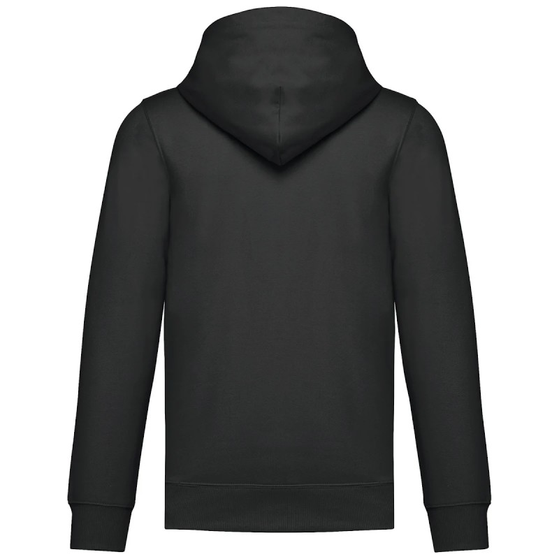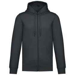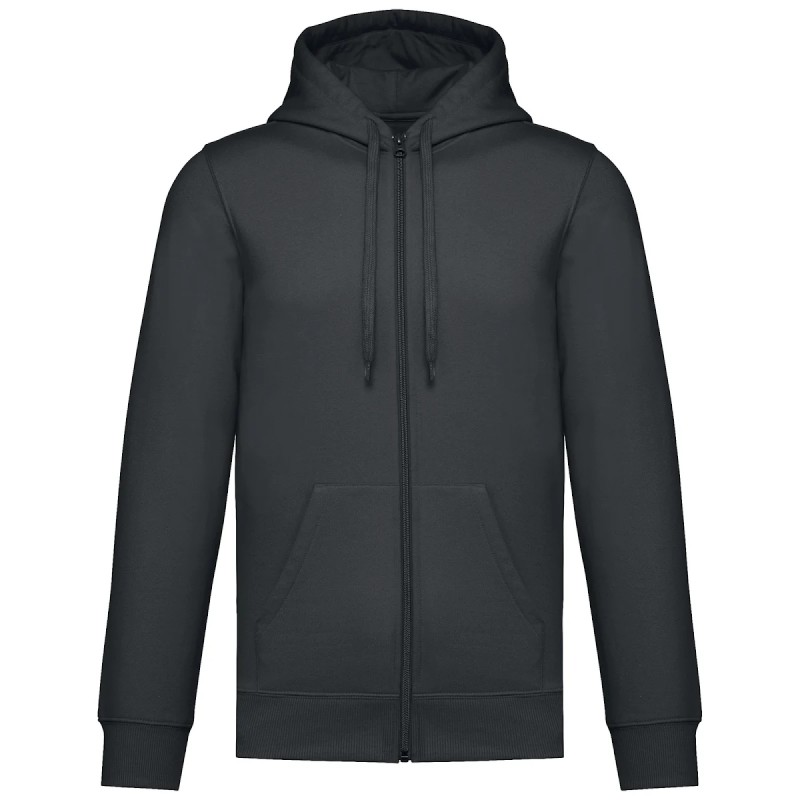 50% coton ring-spun / 50% polyester recyclé post consumer. Molleton gratté. Coupe straight. Coupé cousu. Bord-côte 2x1 montage tubulaire pour une meilleure finition au col, bas de manches et de vêtement. Poche kangourou. Zip de fermeture en nylon. Capuche doublée polycoton jersey avec cordon de serrage plat. Bande de propreté jersey ton sur ton à l'intérieur du col. Pas d'étiquette de marque au col, uniquement une puce de taille pour faciliter la personnalisation.