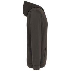 80% coton / 20% polyester. Coton peigné. Molleton gratté. Manches montées. Capuche doublée. Poches Kangourou. Finition bord-côte bas de manches et de vêtement.