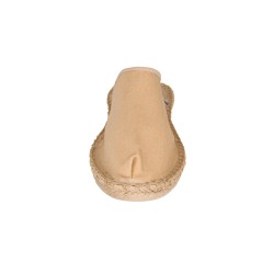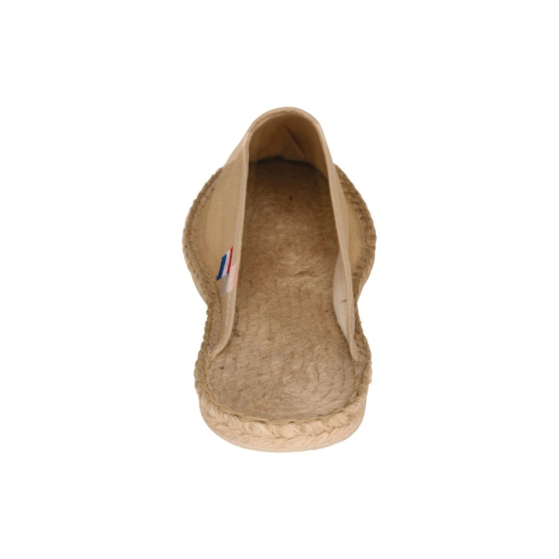 Toile 100% coton. Semelle en caoutchouc vulcanisé et jute. Finition biais. Etiquette tissée tricolore insérée dans le biais extérieur côté gauche au porté. Fabrication française.