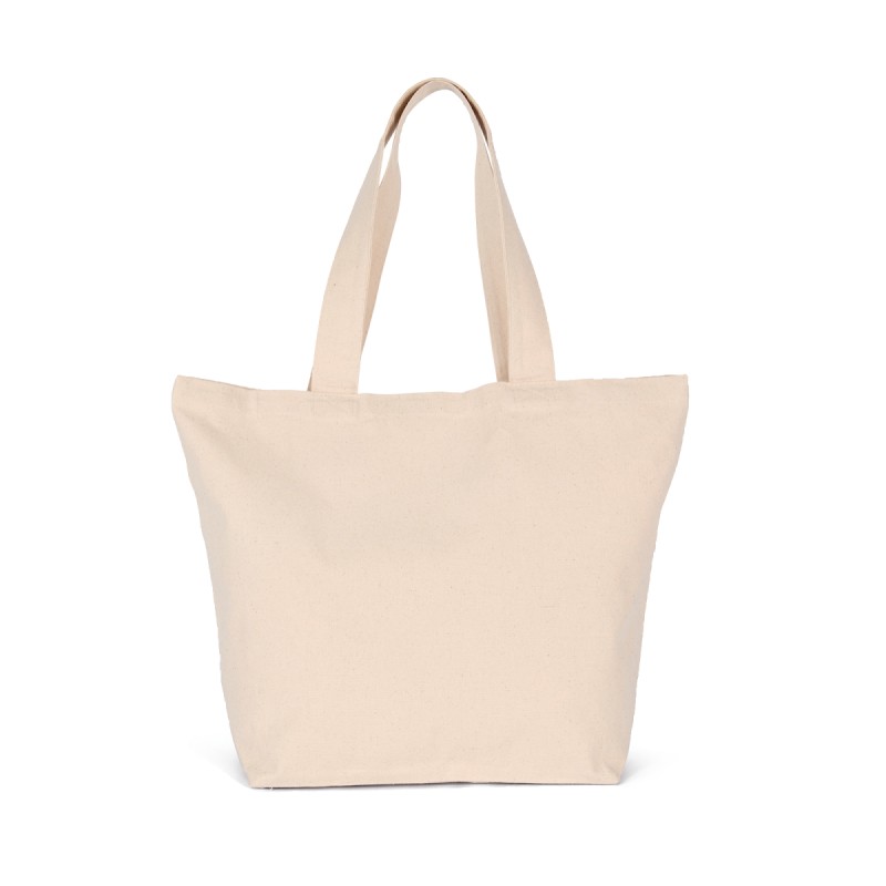 100% coton. Sacs de shopping classiques avec soufflet, disponibles en différentes dimensions, du S au XL. Fermeture à bouton-pression en métal. Poignées sangles réalisées dans le même tissu que le corps du sac.