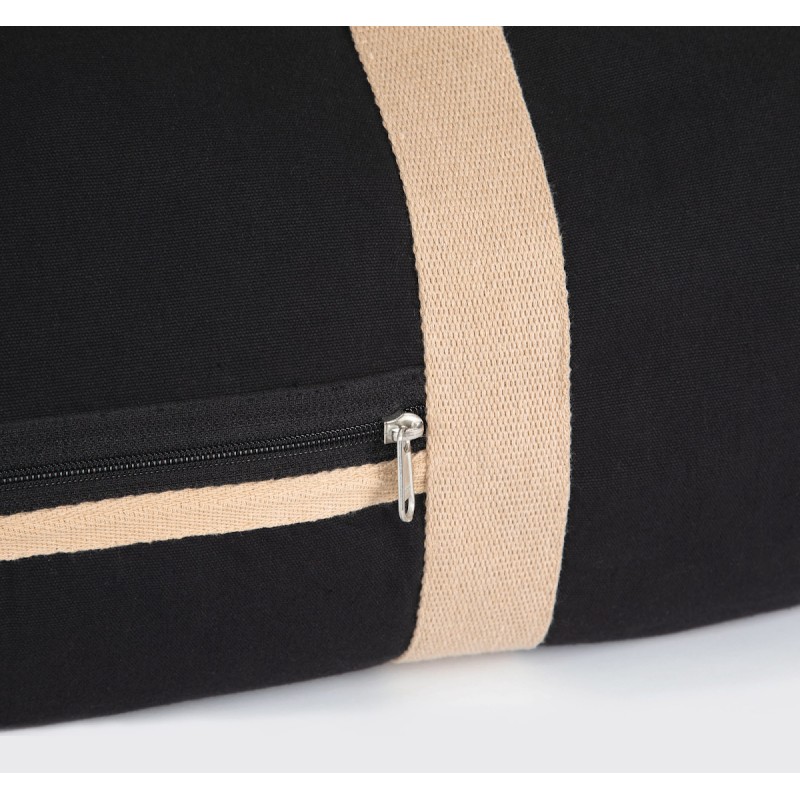 67% coton recyclé / 30% polyester recyclé / 3% autres fibres (Black Night), 75% coton recyclé / 22% polyester recyclé / 3% autres fibres (Ecume). Les poignées de 4,25 cm, extra confort, de couleurs contrastées sont cousues tout le tour du sac pour apporter une touche d'originalité et une plus grande résistance. Le sac est doté d'une poche avant avec fermeture zippée.