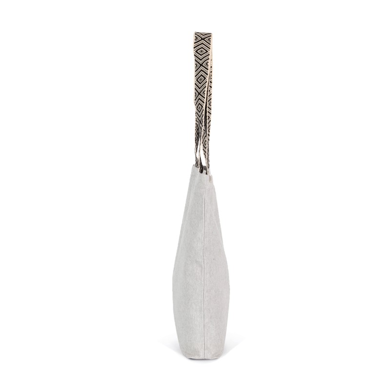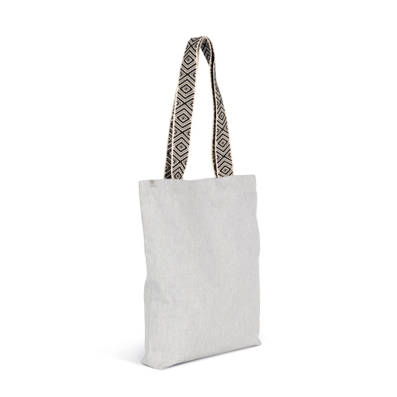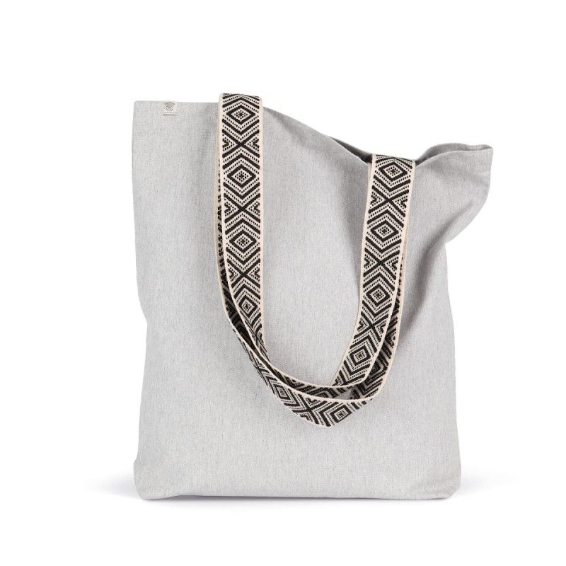75% coton recyclé / 22% polyester recyclé / 3% autres fibres. Tissage canvas robuste de haute qualité. Poche intérieure de rangement. Anses contrastées de 60 cm de long et 4,25 cm de large.