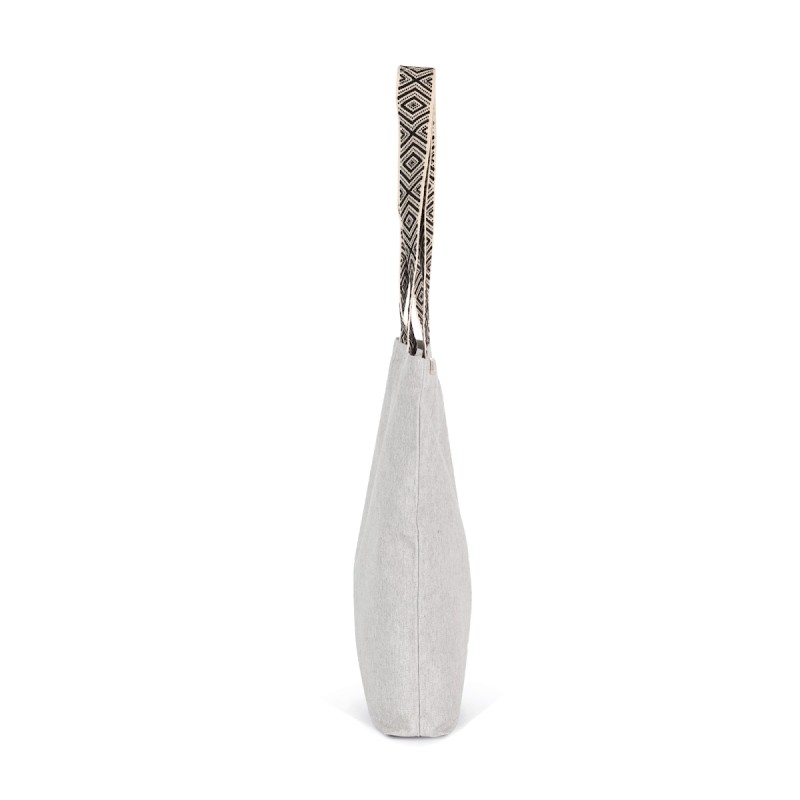 75% coton recyclé / 22% polyester recyclé / 3% autres fibres. Tissage canvas robuste de haute qualité. Poche intérieure de rangement. Anses contrastées de 60 cm de long et 4,25 cm de large.