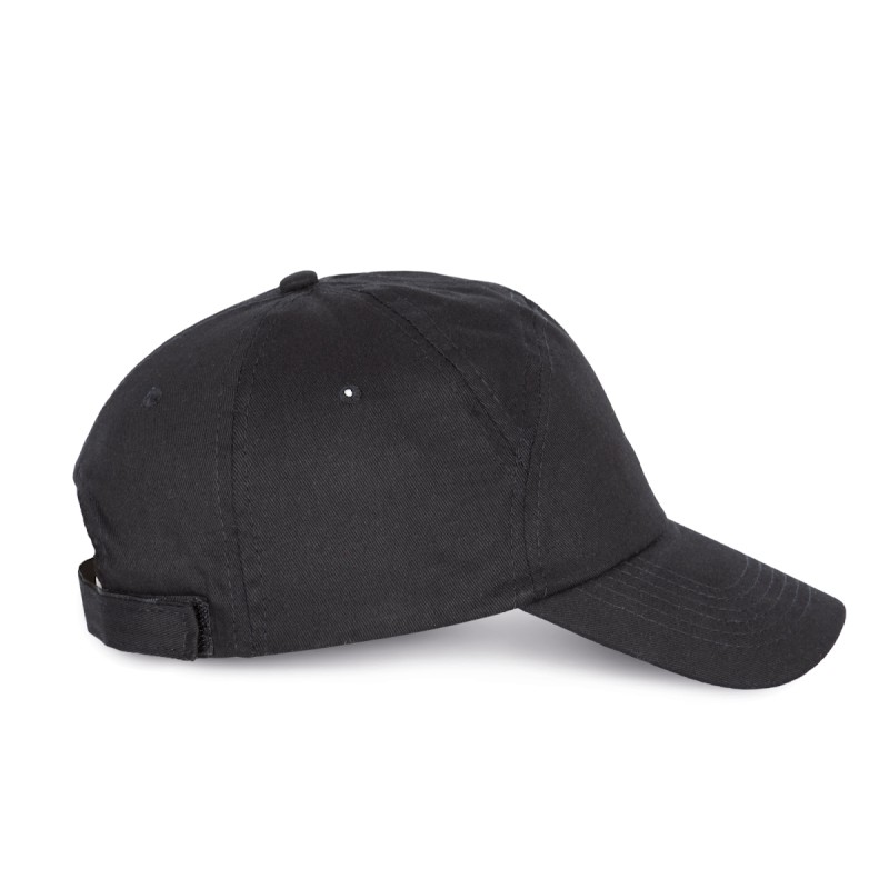 100% coton sergé. Fermeture arrière réglable par bande auto-agrippante.