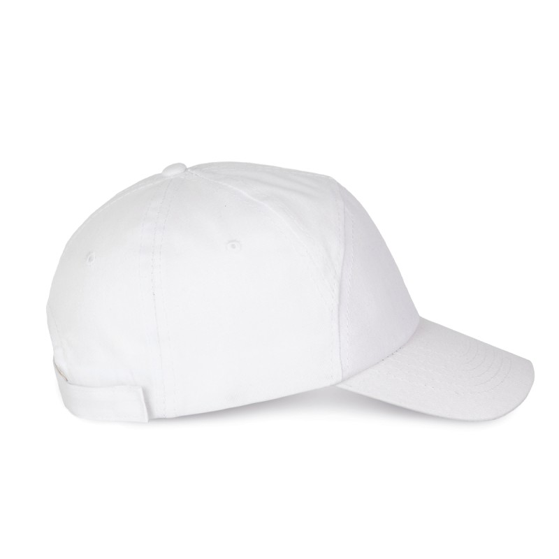100% coton sergé. Fermeture arrière réglable par bande auto-agrippante.