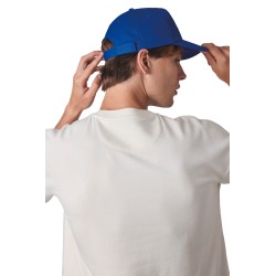 100% coton sergé. Fermeture arrière réglable par bande auto-agrippante.
