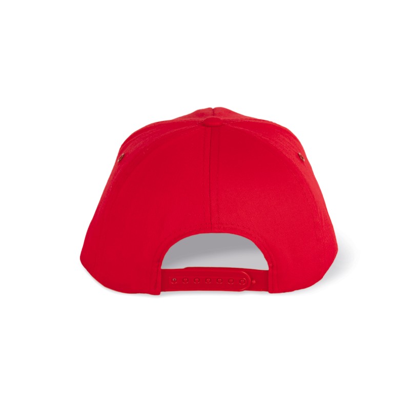 100% coton sergé. Fermeture arrière réglable par réglette plastique.