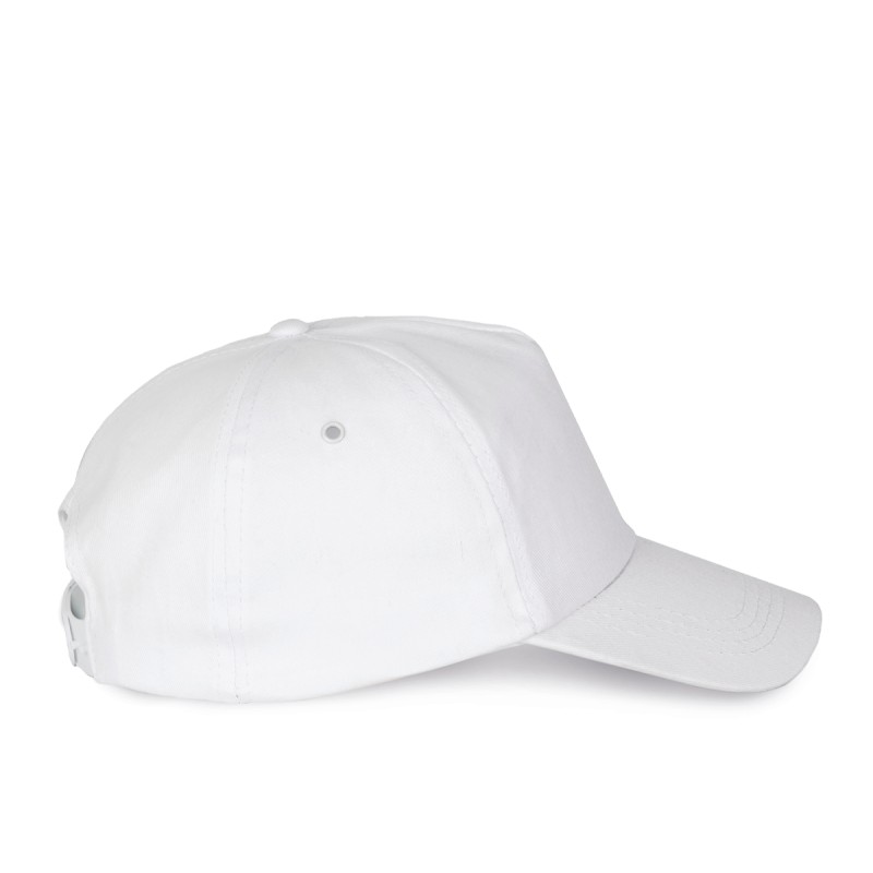 100% coton sergé. Fermeture arrière réglable par réglette plastique.