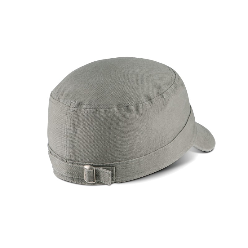 100% coton délavé. Fermeture arrière réglable par boucle métallique.