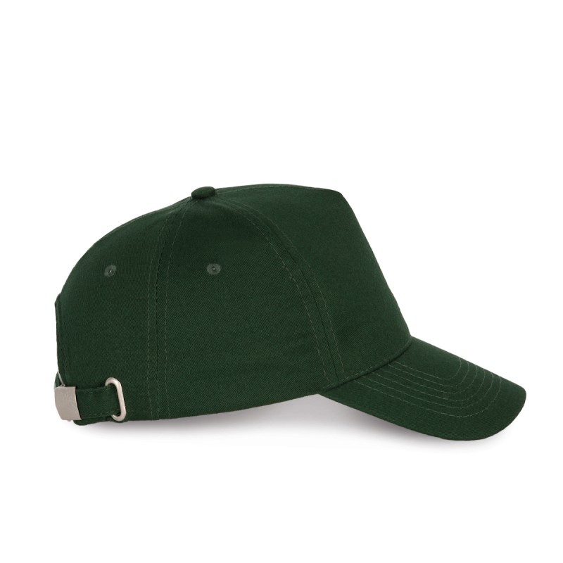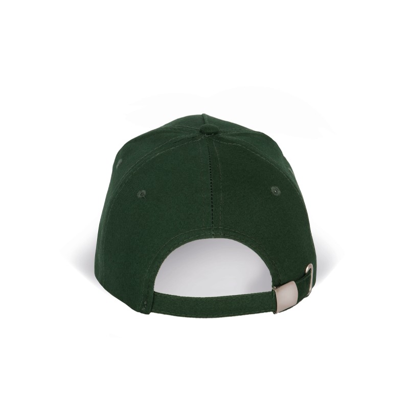 100% coton sergé brossé. Renfort frontal. Visière préformée. Fermeture arrière réglable par boucle métallique + passant couleur argent mat.