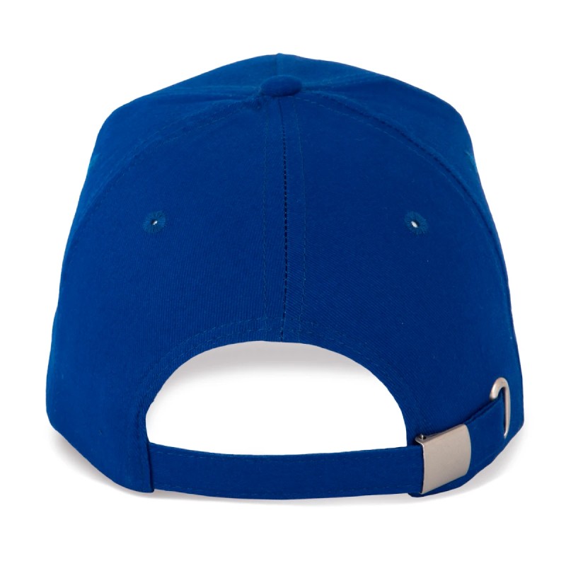 100% coton sergé brossé. Renfort frontal. Visière préformée. Fermeture arrière réglable par boucle métallique + passant couleur argent mat.
