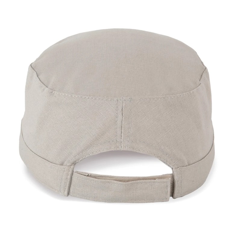 100% coton canvas. Fermeture arrière réglable par bande auto-agrippante.